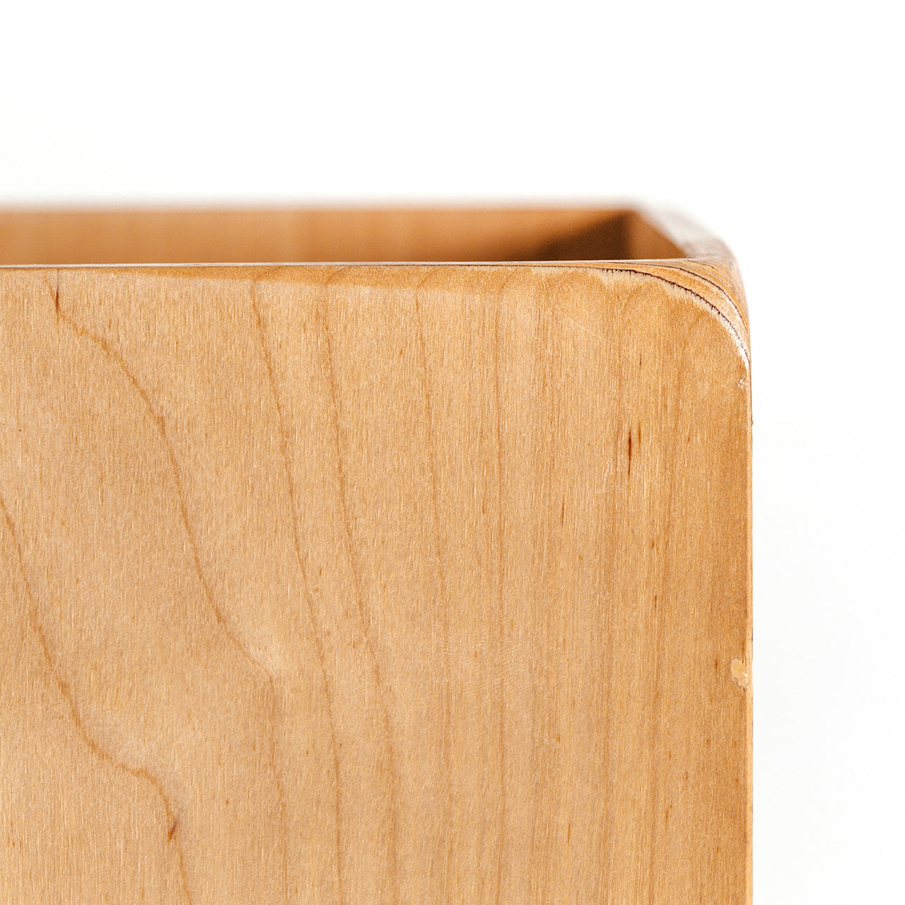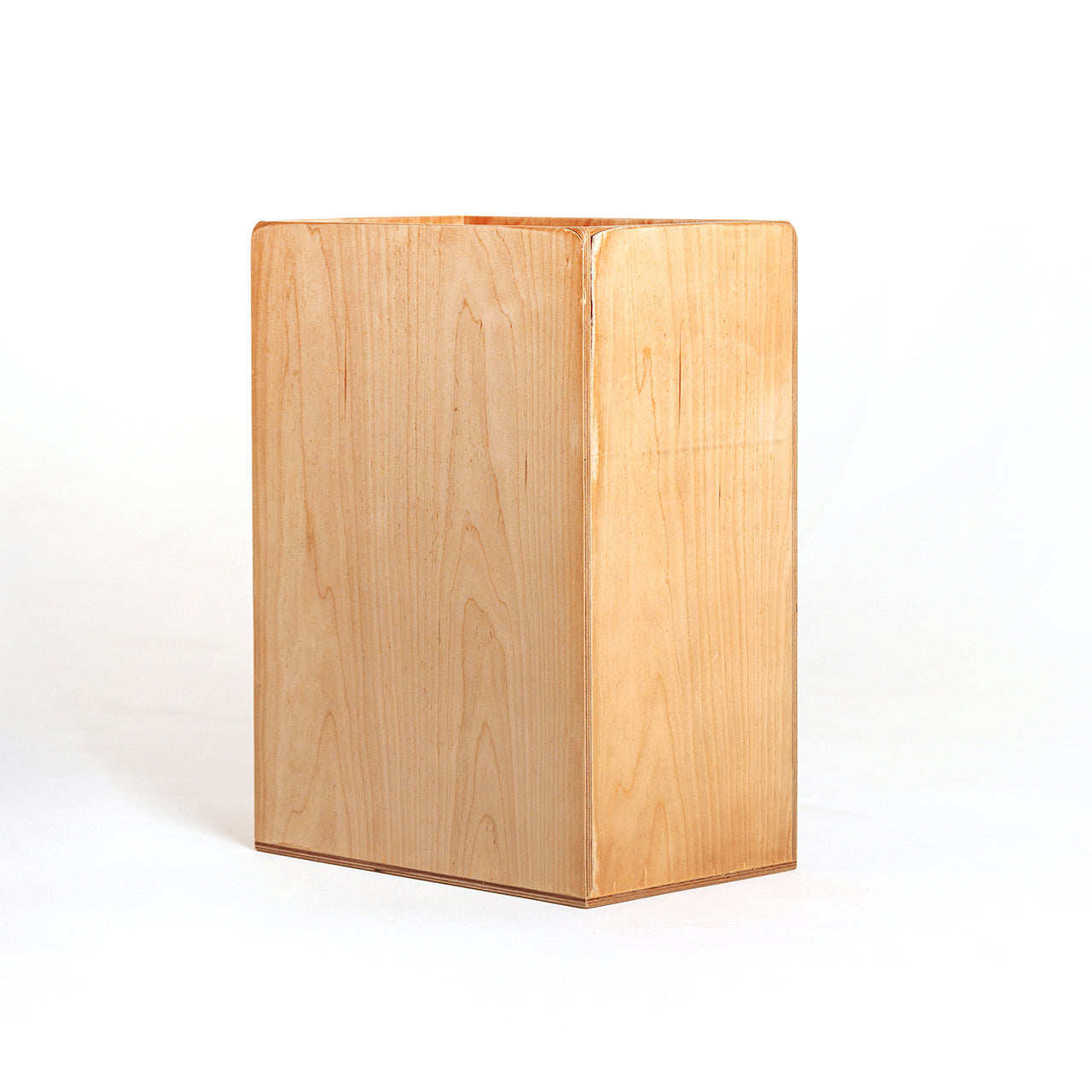 Do away with dreary plastic bins. Designed with the same height measurements, the bins work beautifully together. The one bin has less volume but has two shelves in which to keep your refuse bags and cleaning materials. The bin without shelves, has more volume and is ideal for recycling.